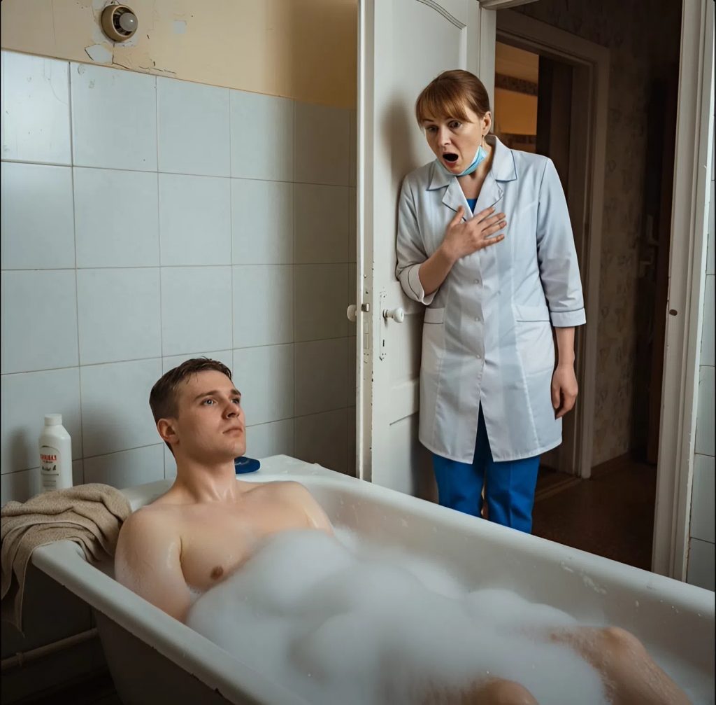 “Alright, let’s get you clean,” she whispered softly, filling the tub with warm water and soap. Steam curled upward, fogging the mirror. She lifted him gently with the help of an orderly and lowered him into the water.