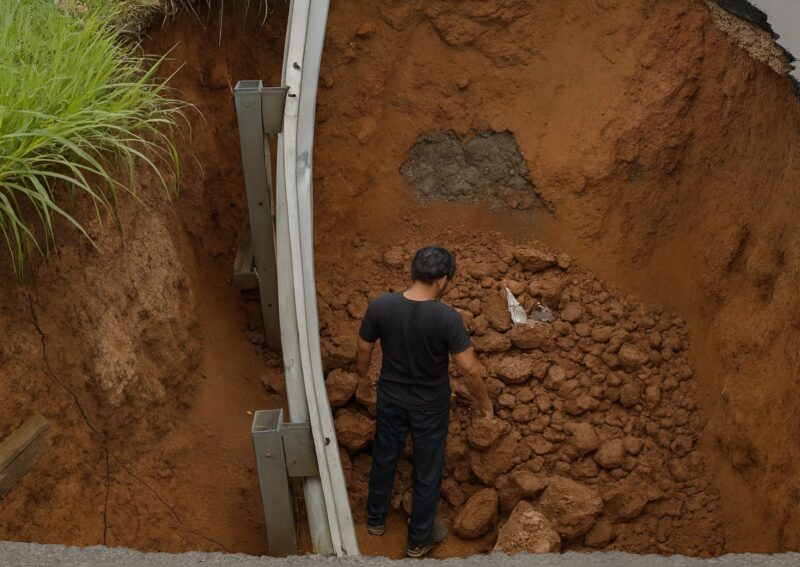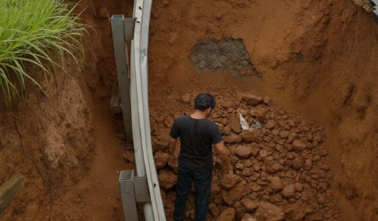 The road that once carried hundreds of vehicles a day now stopped abruptly over an abyss. Police, emergency crews, and engineers arrived almost instantly. People were forced behind barricades for safety, fearing further collapses, yet every gaze was drawn downward — into the jagged red-clay void where smooth asphalt had existed just hours before.