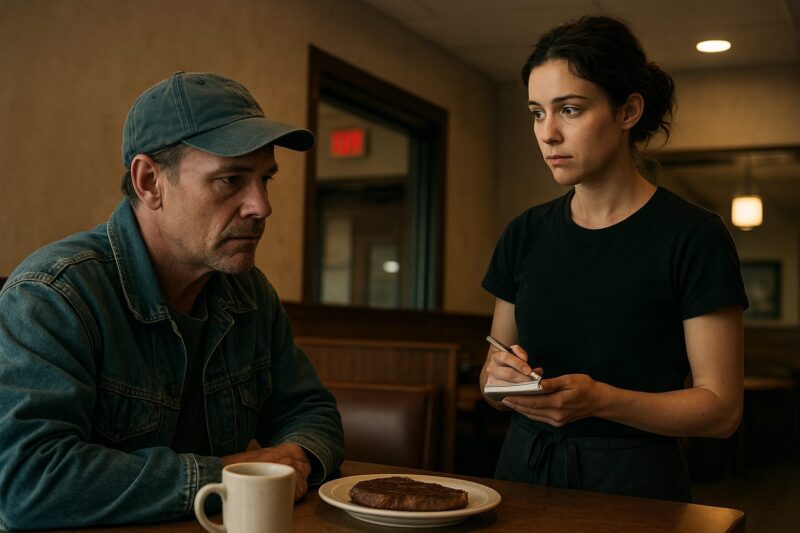 Just that fierce, tired heat people carry when they’ve been silent too long. She stood near the soda machine that flickered every other hour, half-lit like a broken streetlamp. Under that lousy bulb her eyes looked deeper, older.