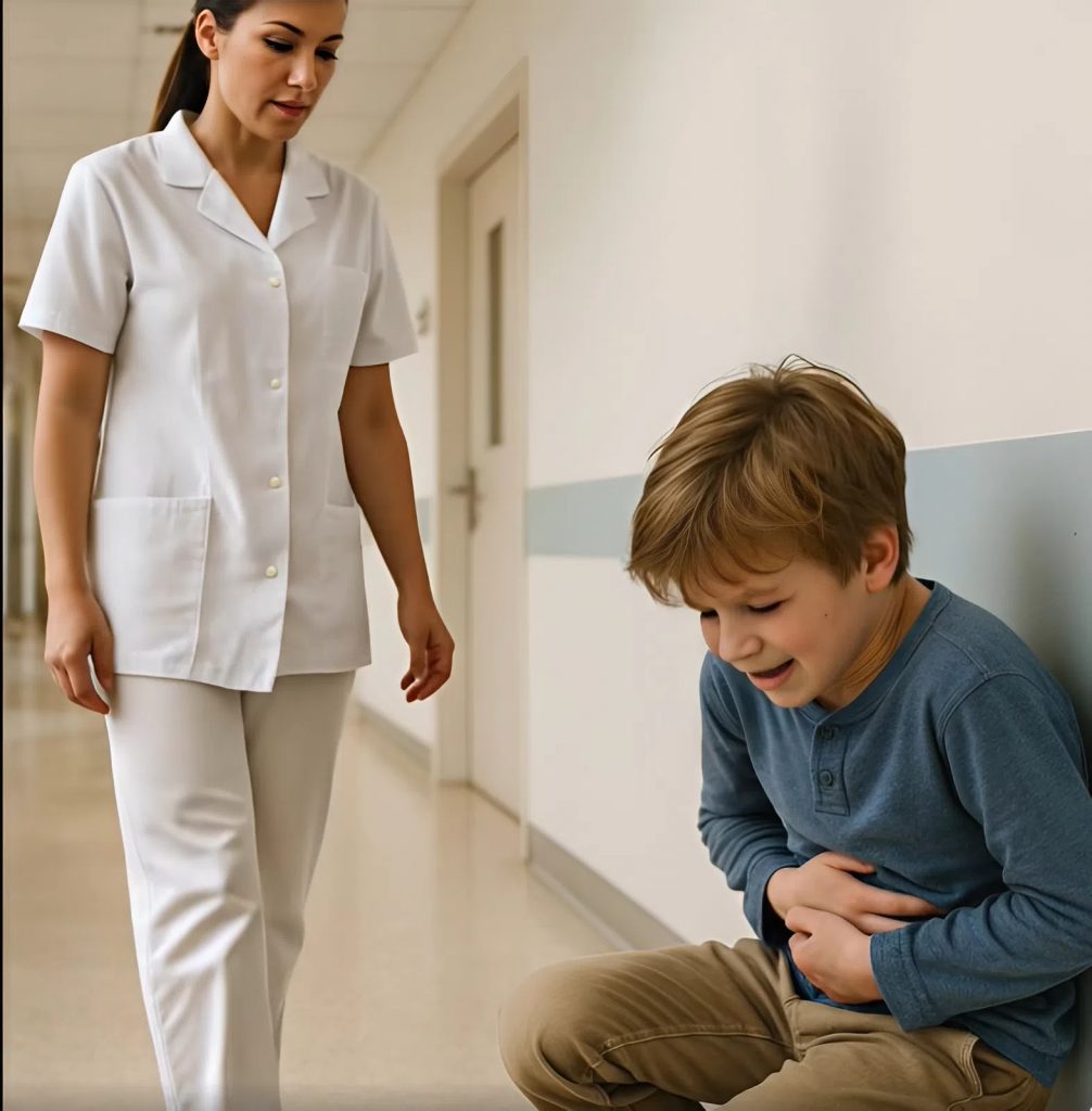 “I… my stomach… it hurts a lot,” he whispered, barely able to stand.
