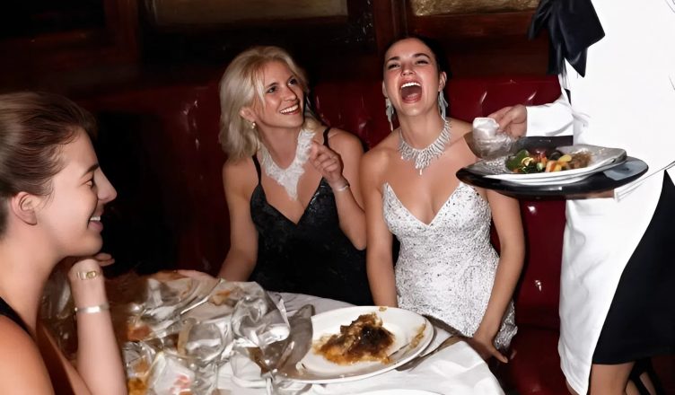 At the next table sat three women — elegant, draped in designer dresses, their jewelry sparkling beneath the chandeliers. Their laughter was loud, confident, the kind that demands attention. But when a young waitress approached with their plates, that laughter changed its tone.