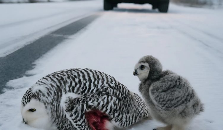 But what truly tore his heart apart was what he saw next — a tiny owlet pressed against her, trembling violently in the cold. The mother owl, barely breathing herself, had wrapped her remaining wing around the chick, trying to shield it from the freezing wind. It was instinct, love, and sacrifice — pure and heartbreaking.