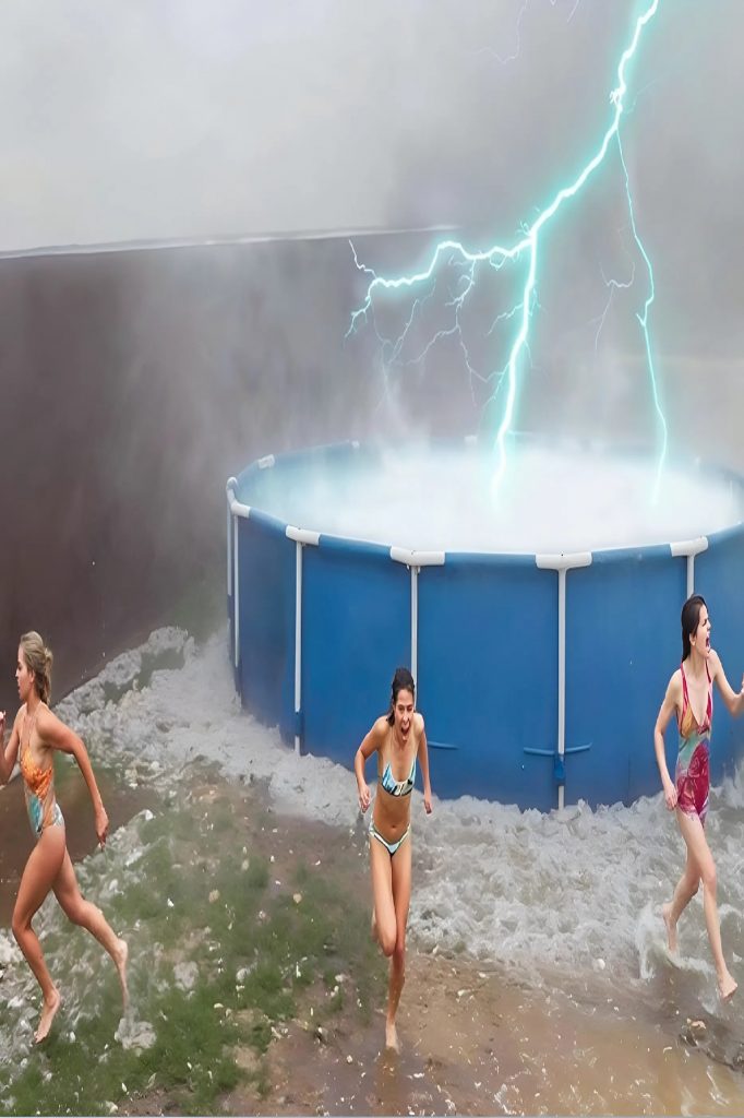 When lightning struck the pool, the sound wasn’t just loud — it tore through the air. The flash blinded everyone nearby. At first, people thought it was just thunder, but within a heartbeat, it became clear — the lightning had hit the water directly. The pool boiled, and a scream of terror shattered the silence.