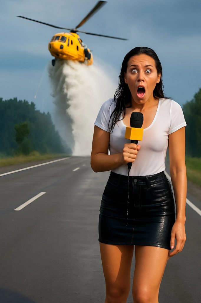 Within minutes, the clip was everywhere. Social media exploded with disbelief and horror. People replayed the footage frame by frame, trying to understand how something so catastrophic could happen on live television. Aviation experts later confirmed that the helicopter was flying dangerously low — close enough for its downwash to create a powerful air vortex that lifted and dumped thousands of gallons of water in an instant.