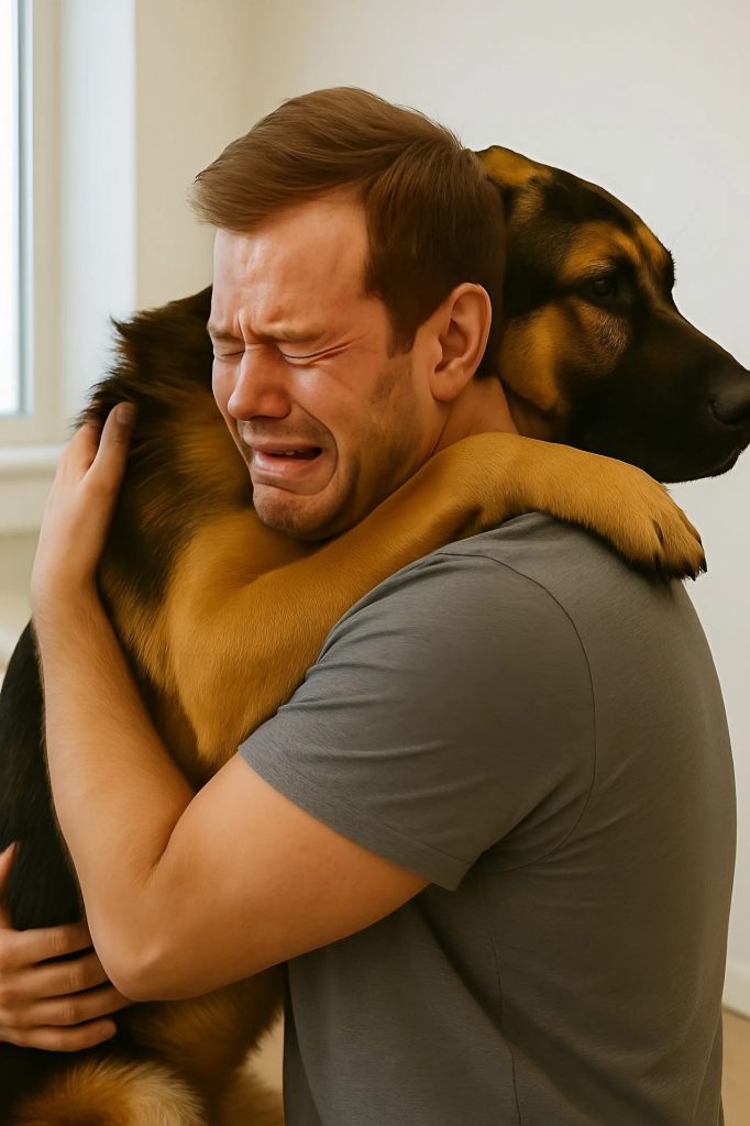 The dog, as if understanding every word, placed a paw on his owner’s shoulder and pressed weakly against him. The man couldn’t hold back and began to cry, embracing his loyal friend.