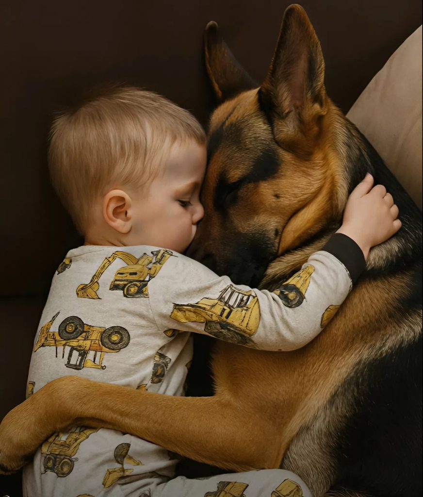 The dog didn’t move. He simply lay there, his large paw gently resting on the child’s small chest, as if guarding his heartbeat.