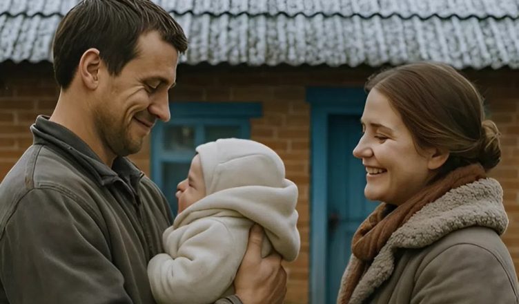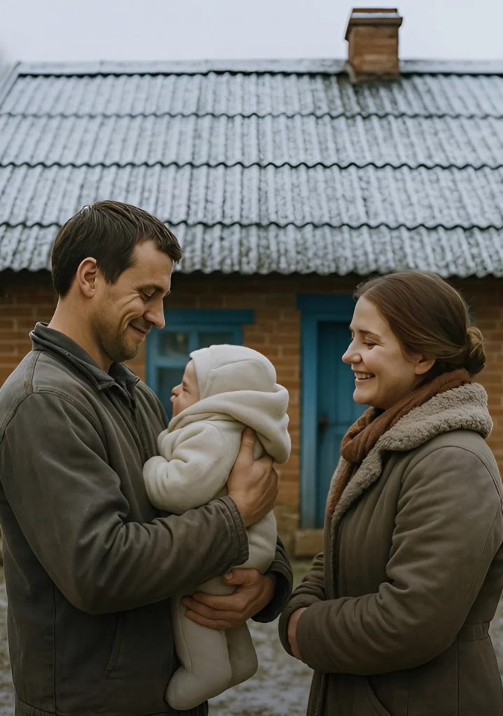She hesitated, then carefully opened it a crack — and saw a man in his forties, drenched, shivering, his face pale and tired. In his arms, wrapped in a thin blanket, was a baby.