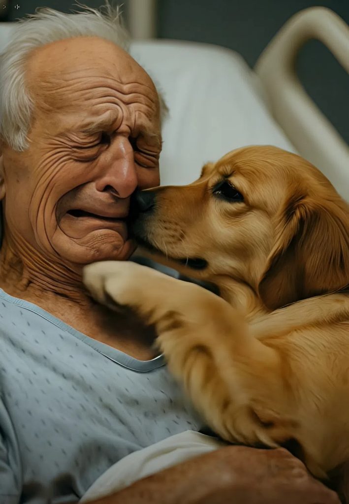 When the nurse opened the door to the room, the dog walked straight to the bed, jumped up, and gently laid his head on his owner’s chest.