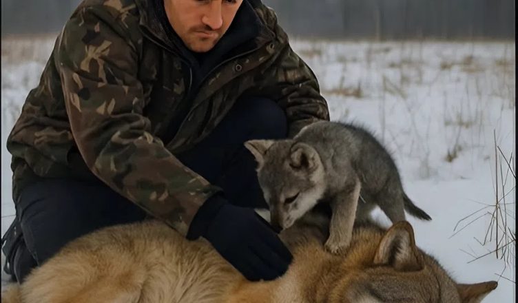He was about to step back and run, but then he saw that the wolf wasn’t moving. Nearby, a small pup scurried around, rubbing against its mother’s side and trying to lick her.