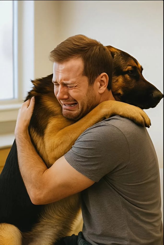 The dog, as if understanding every word, placed his paws on the man’s shoulders and pressed close. The man held him tightly, crying openly.