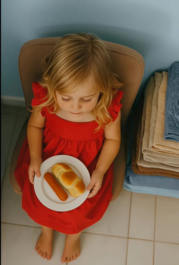 She placed my daughter on a folding chair in the laundry room, next to a stack of towels and the humming washing machine. On her plate was just a single sausage and a dry piece of bread.