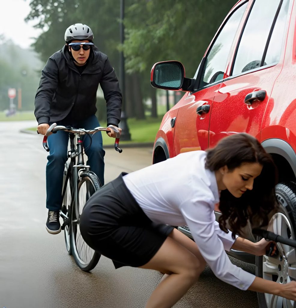 Fragments rushed back — grease-stained hands, the rush to finish, the bicycle leaning against the wall… and her faint smile before she drove away. The red sedan. The passenger seat.