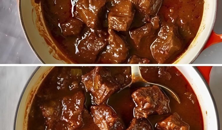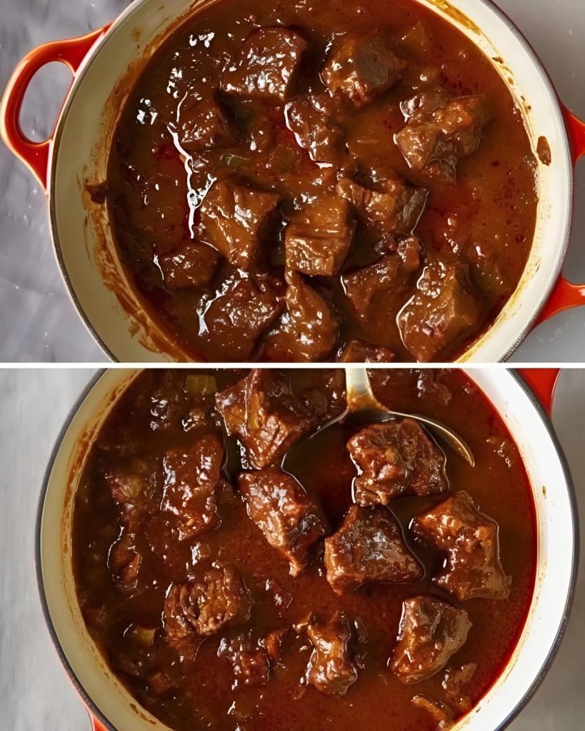 The meat was never cut into small pieces. The chunks were large, bold, almost defiant. After hours of slow cooking, they became so tender they fell apart at the slightest touch. The amount of onions seemed excessive—almost reckless. But with time, they dissolved completely, forming a dark, rich base for the sauce. Magda would simply smile. She knew exactly what she was doing.