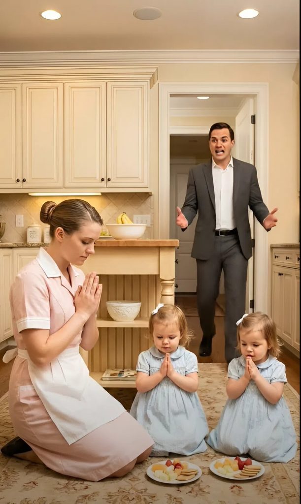 On the living room rug stood Dalia Rosewood, the cleaning woman. In front of her sat the one-year-old twins, Tara and Mabel. Their tiny hands were clasped together, their eyes closed, their faces calm—as if they were part of something sacred.