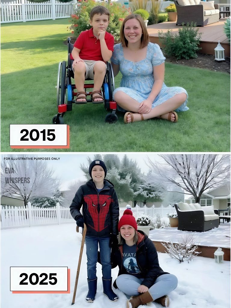 He was no longer the fragile little boy I had once carried in my arms. He was a tall, slender teenager in a wheelchair, with intelligent eyes and a calm strength that many adults never develop. Just minutes earlier, he had been smiling. Then he saw her.