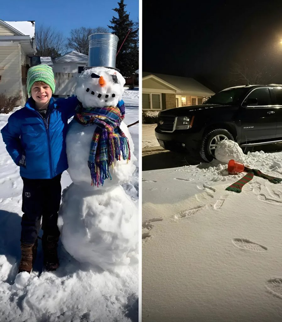 Outside, Mr. Streeter was standing next to his car, frozen in shock. His bumper was pressed against something white—except this time, it wasn’t a snowman.