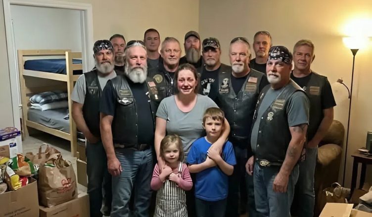 Within seconds, thirty biker men appeared at my door. Leather vests, steel-toed boots, thick beards, tattooed arms, faces carved by life. And behind them stood the landlord—Richard—hands in his pockets, wearing that cold, businesslike look that he used when he wanted to pretend he had no feelings.