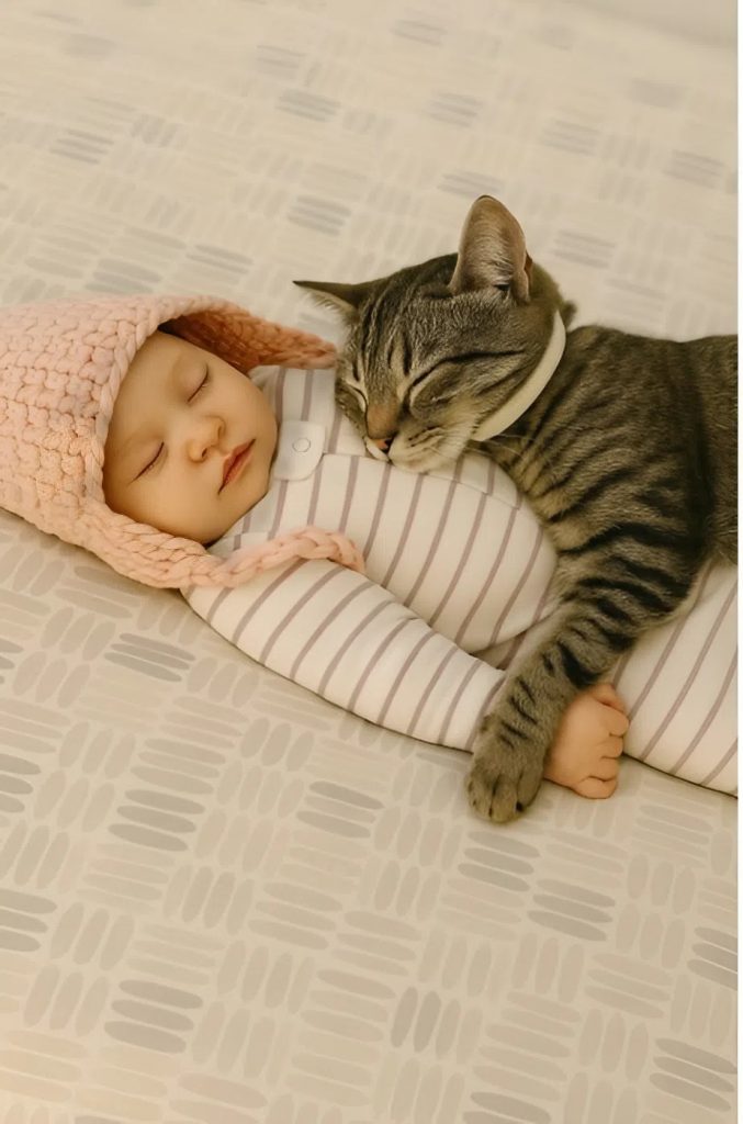 Barsik sniffed the baby’s cheek, closed his eyes, and rested his head on the tiny chest. The room filled with a strange, heavy stillness — a fragile peace stolen from chaos.