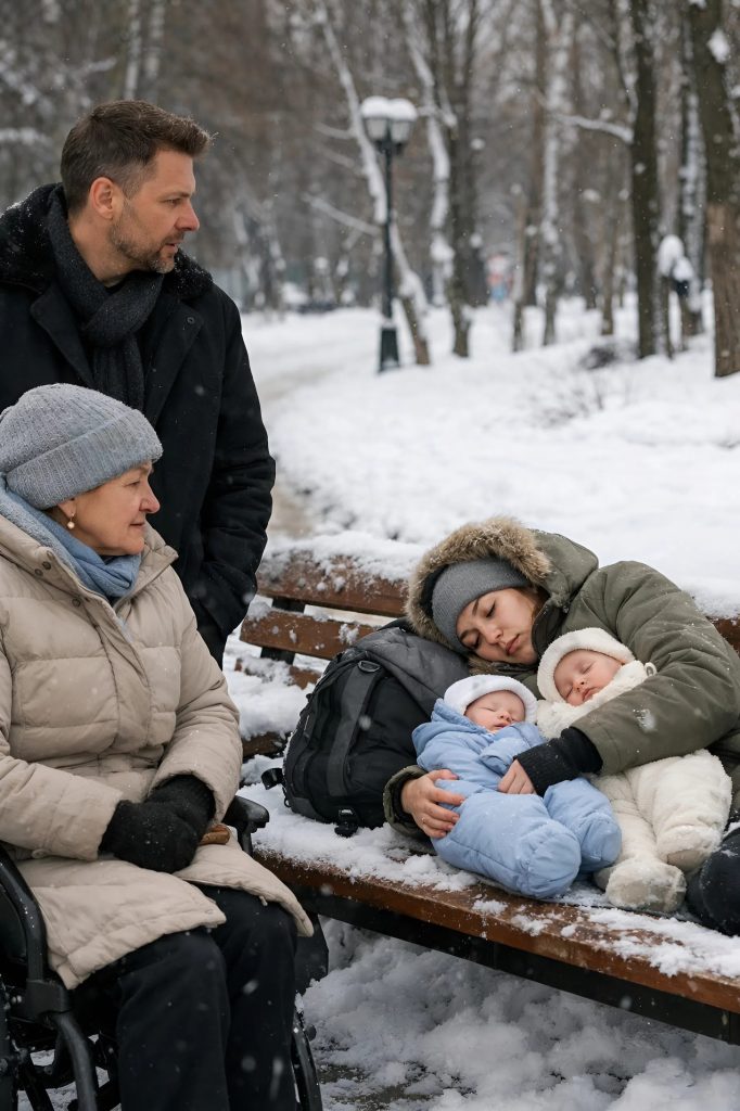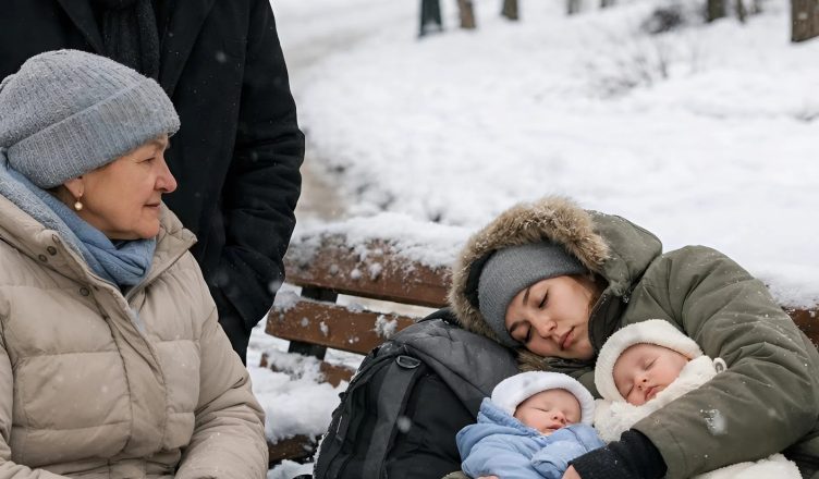 Adrian walked toward the bench. Each step felt heavier than the one before, as if he were moving straight into a past he had spent years burying beneath success and discipline. The woman was asleep—no, not peacefully, but from sheer exhaustion. Her face was pale, her features drawn. Even in sleep, her arms curved protectively around the two babies wrapped in worn blankets.
