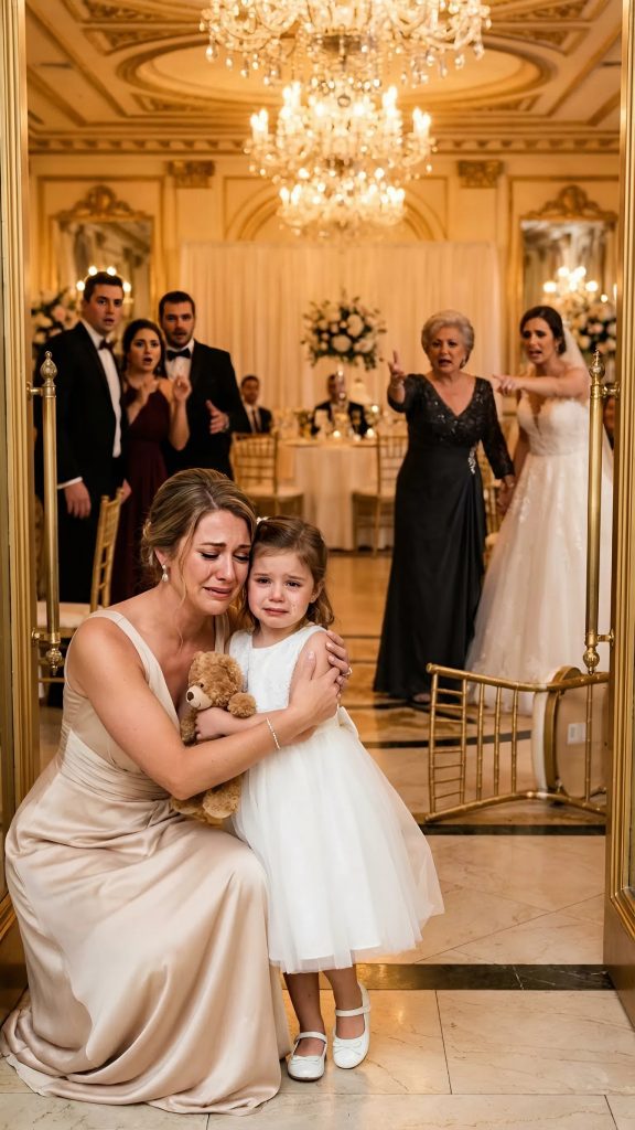 They believed the groom’s family was that rich. At the reception, my eight-year-old daughter accidentally stepped on the wedding dress. My sister shoved her off a two-meter drop. When I tried to call 911, my mother slapped me, hissing, “Stop ruining her big day, you jealous loser.” My father kept striking my child’s face, yelling, “Get up. Stop pretending.”