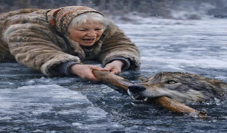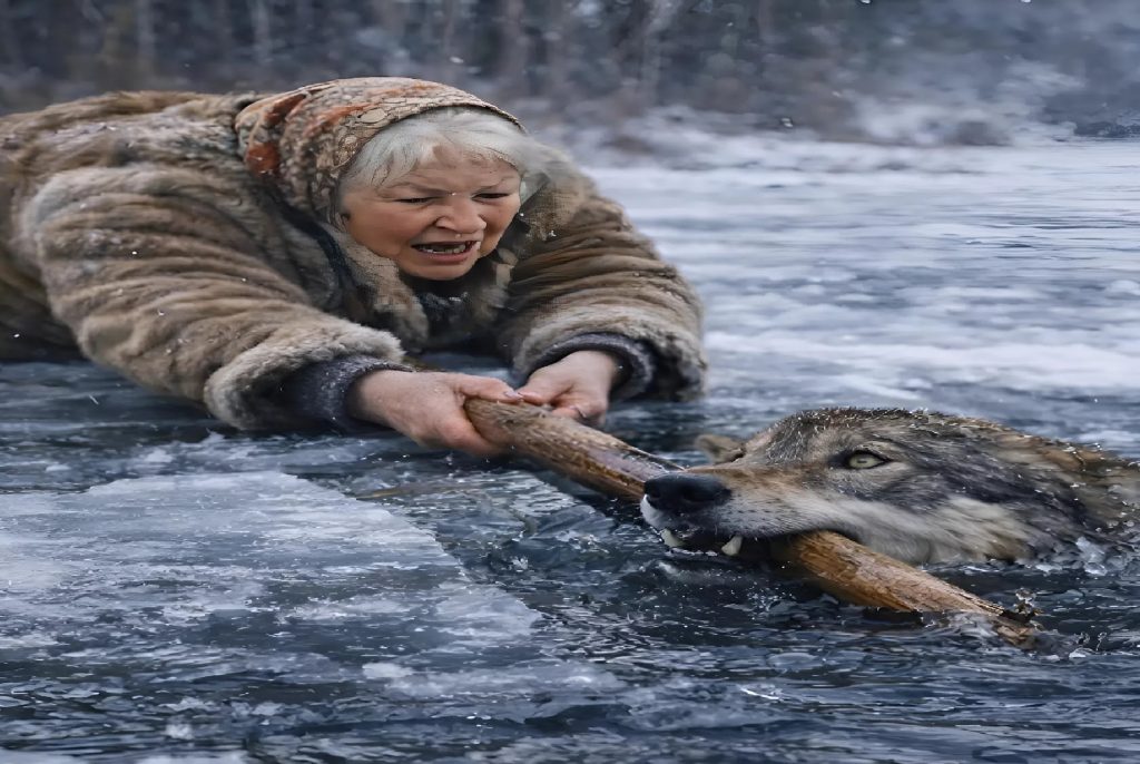 Not far away, an elderly woman was gathering firewood. The stillness of the winter forest was shattered by splashing and a harsh, choking sound. She followed the noise and froze at the sight before her: a large gray wolf thrashing helplessly in the icy hole.