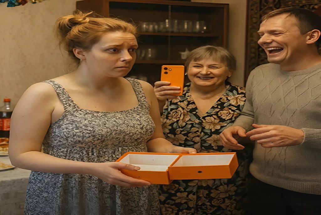My husband burst out laughing. My mother-in-law stood nearby, recording my reaction on her brand-new iPhone—the very phone that was supposed to be inside the box.